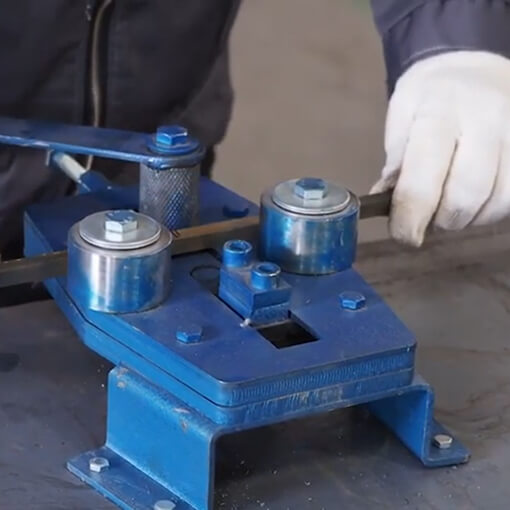 Закаленные ролики с насечками прокатывают профиль по радиусу. Дуги сгибаются плавно, профиль не проскальзывает.